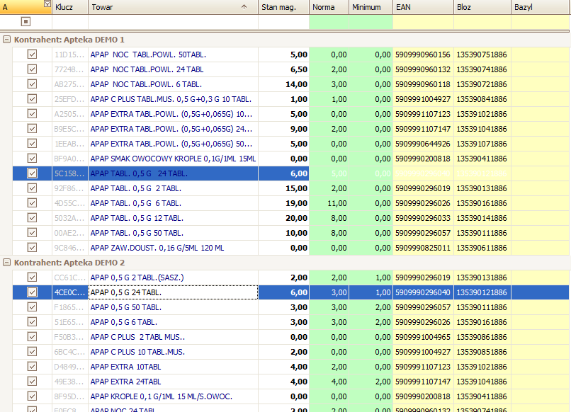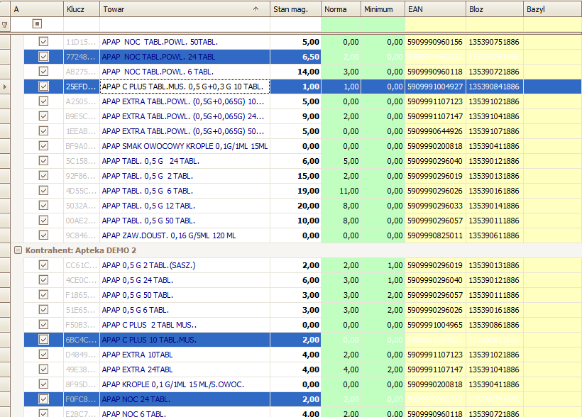 . Następnie zaznaczamy interesujące nas towary (leki).