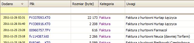 Wszystkie kopie pobranych faktur (jeśli została zaznaczona odpowiednia opcja) znajdziemy w module Załączników systemu SERTUM, w widoku Moje załączniki: