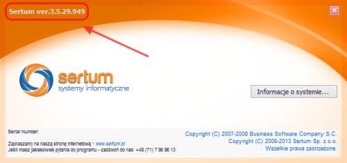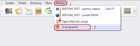 Aby sprawdzić wersję aktualnie używanej aplikacji SERTUM należy wybrać w górnym menu: Pomoc -> O programie.