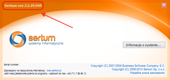 Otwarte zostanie okno z informacjami o programie. W jego lewym górnym rogu widnieje numer wersji: