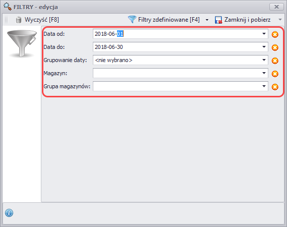 • Grupa magazynów – grupa magazynów dla której ma być opracowana analiza.