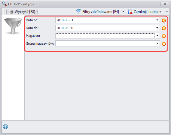 Najpierw należy otworzyć Filtry [Ctrl+F] i uzupełnić wymagane pola: