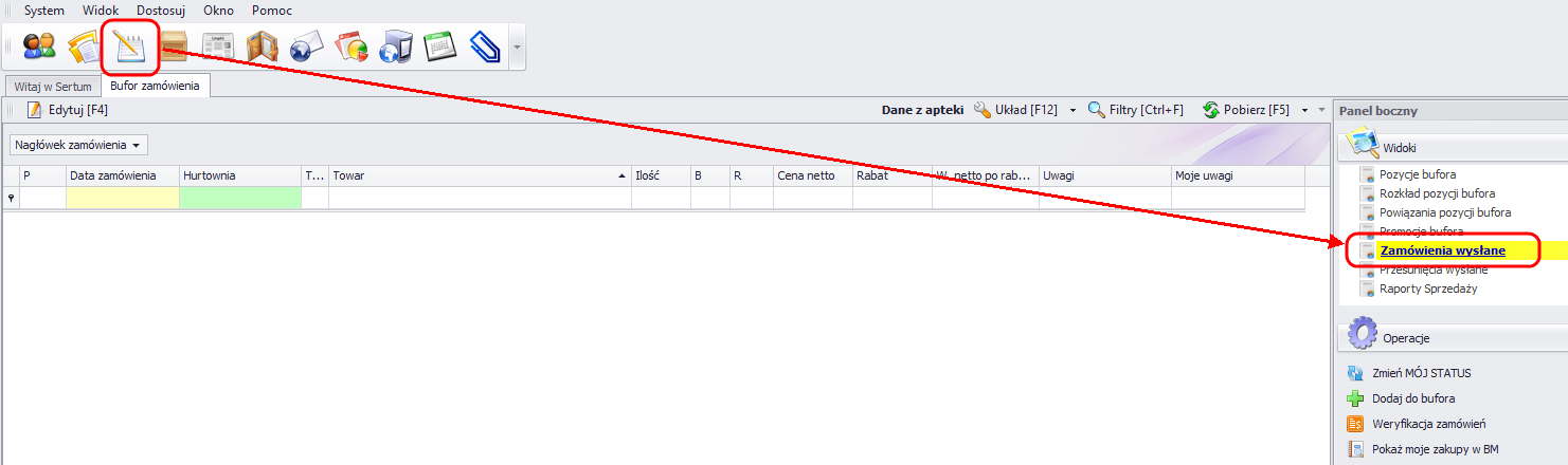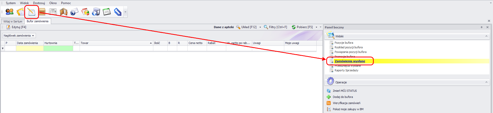 W widoku Zamówienia wysłane (moduł Bufor optymalizacji) umożliwiono dostęp do poszczególnych plików, pogrupowanych według zamówień do poszczególnych hurtowni. Zmiana jest związana z obowiązkiem archiwizowania przez Apteki wszystkich zamówień oraz odmów ich realizacji przez okres 3 lat, a także udostępniania ich na żądanie organów Państwowej Inspekcji Farmaceutycznej [Art.36z.8], Ustawa z dnia 9 kwietnia o zmianie ustawy – Prawo farmaceutyczne (Dz.U. z 2015 poz. 788). Sertum tak jak dotychczas będzie archiwizować wszystkie zamówienia oraz listy braków, jak również odmowy realizacji przez okres co najmniej 3 lat.