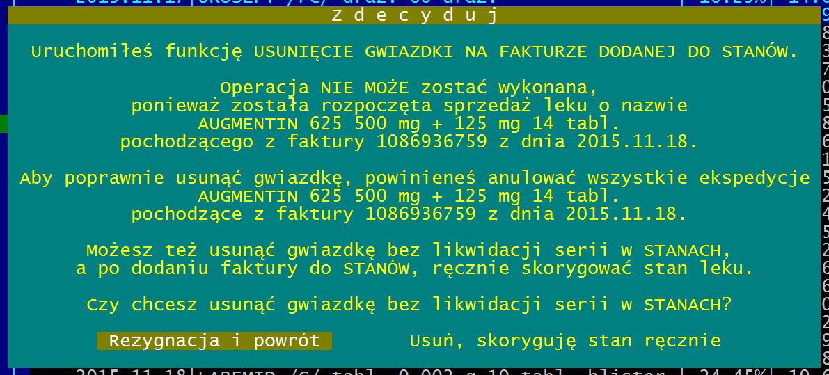 W Przychodach -> Usunięcie gwiazdki wprowadzono dodatkowe pytanie potwierdzające próbę usunięcia gwiazdki w przypadku, gdy wskazywana seria leku została już sprzedana, lub rozpoczęto sprzedaż tej serii.