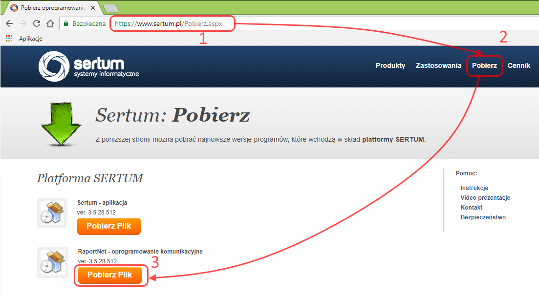 Pobierz plik RaportNet_Setup.exe ze strony internetowej: http://www.sertum.pl/pobierz.aspx