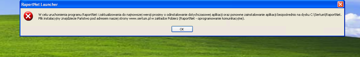 Komunikat ten pojawi się jedynie u użytkowników programu RaportNet, którzy posiadają zainstalowaną aplikacje w w niestandardowej lokalizacji np.: w Pliki programów (x 86).