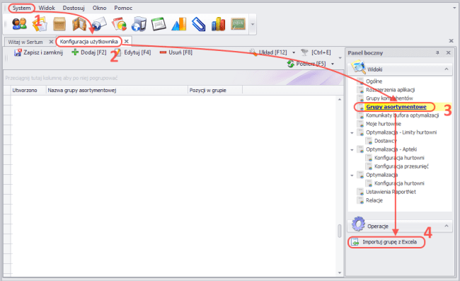 Import grup asortymentowych z Excela