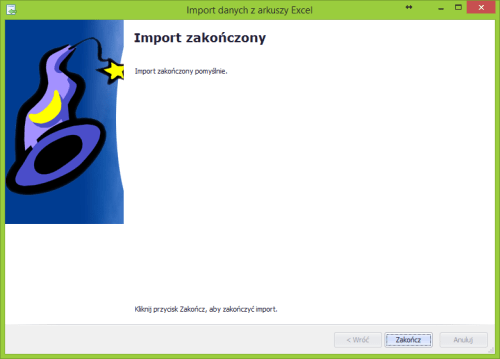 Po zakończeniu importu kreator wyświetla okno informujące o pomyślnym zakończeniu importu.