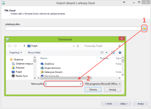 W kolejnym oknie należy wskazać plik Excel. Dane, które plik musi zawierać w celu zaimportowania grupy asortymentowej to: