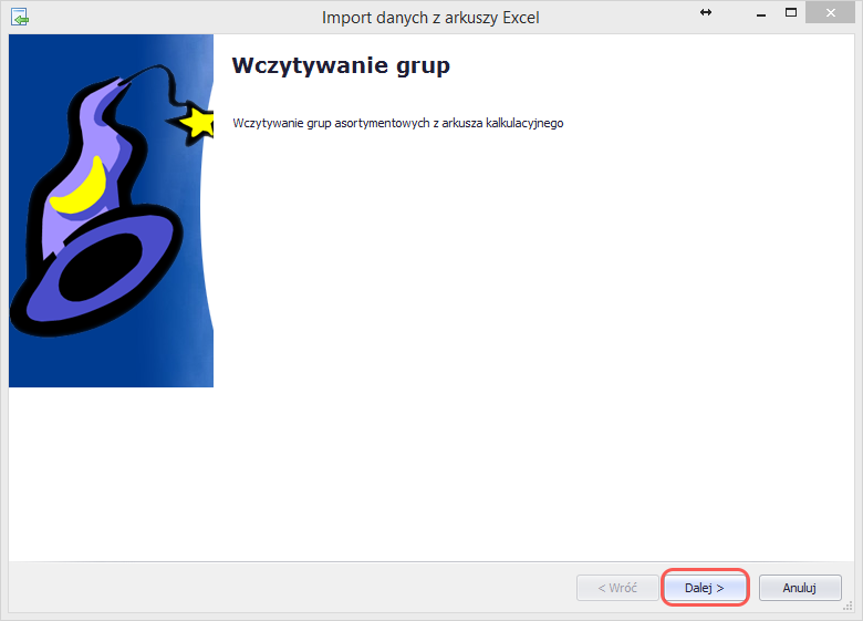 Import grup asortymentowych z Excela