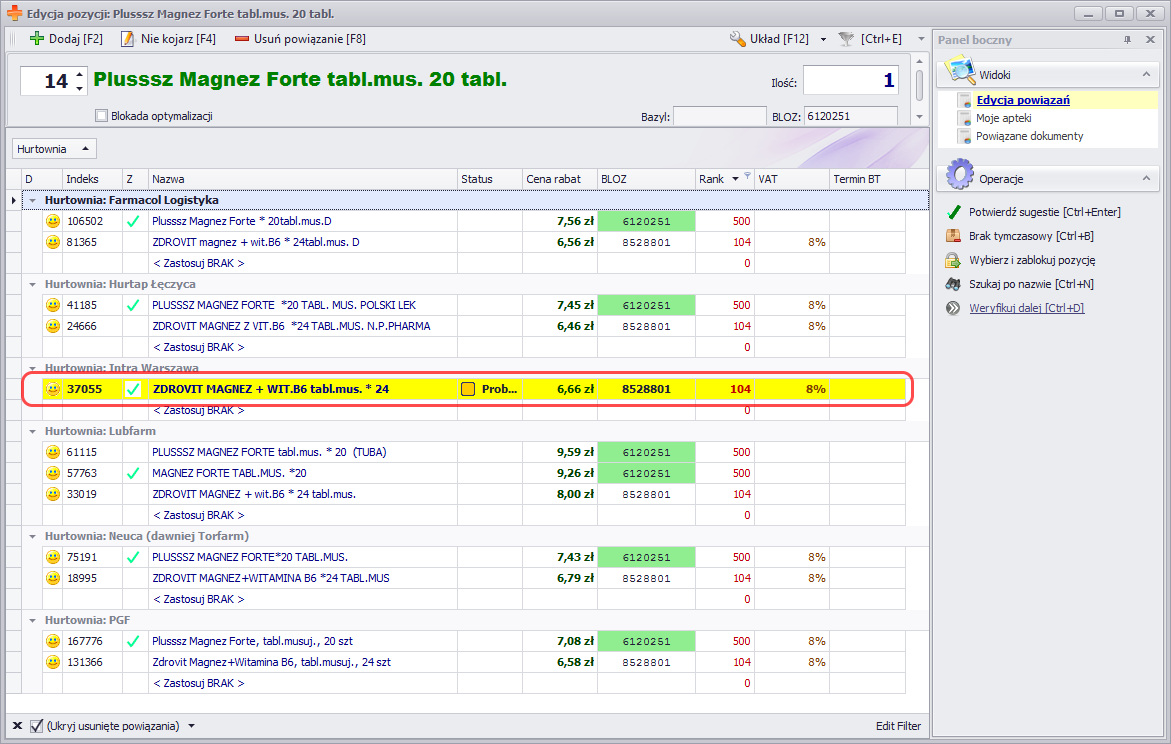 Raz dobrze powiązany towar zostanie zapamiętany, więc edycje powiązań dla konkretnego preparatu wykonuje się tylko raz.