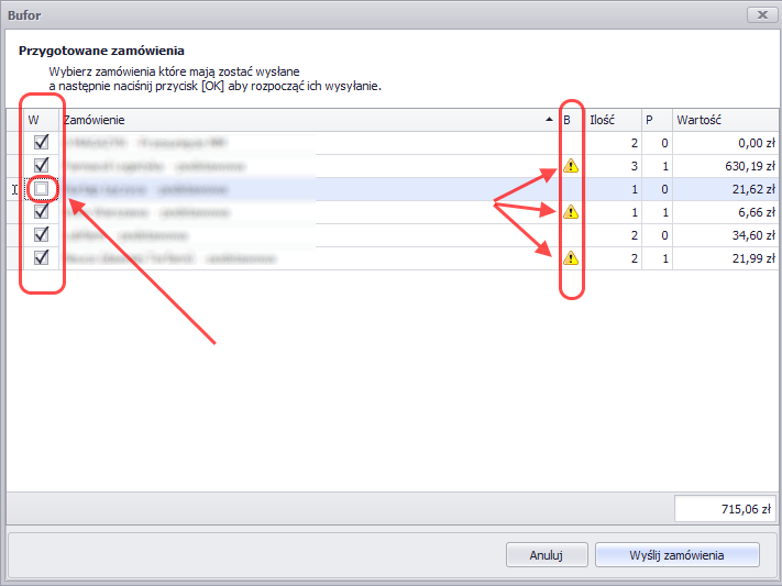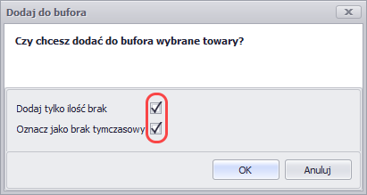 Zastąp – jeśli w buforze znajduje się już towar, który jest w nowym zamówieniu, to zamawiana ilość jest pobierana z nowego zamówienia.