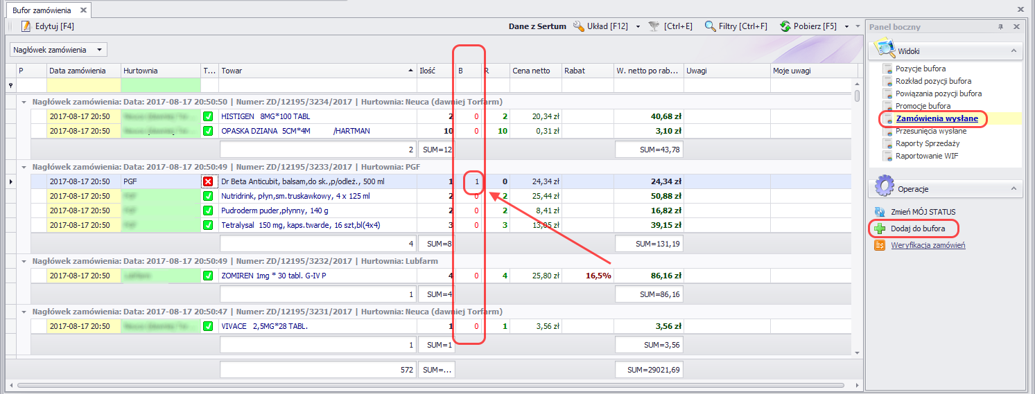 Należy jednak pamiętać, że przenieść do bufora można tylko te pozycje zamówień, które były wysłane z bufora zamówienia.