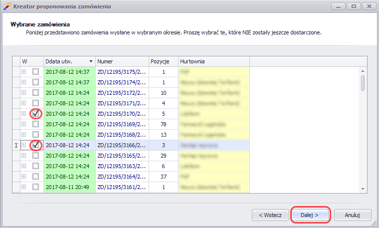 Zaznaczamy zamówienia, aby kreator zamówień traktował ilości z zamówień, tak jak by już towar był w aptece na stanie: