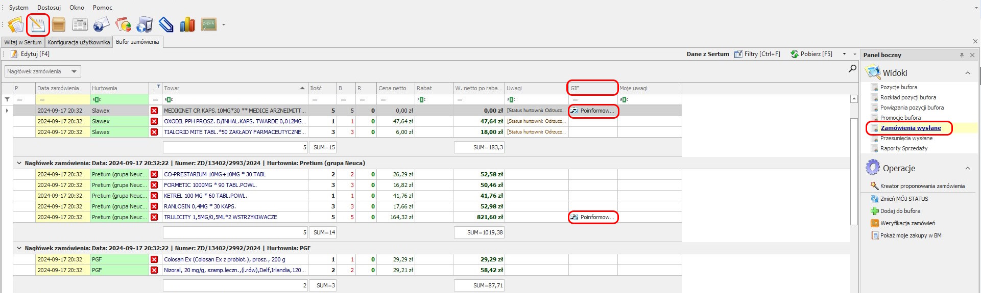 Ze względu na fakt, że nie wszystkie hurtownie wystawiają odmowy w formacie zgodnym z ZORZ, Sertum generuje pliki odmów na podstawie wystawionych przez hurtownie list braków.