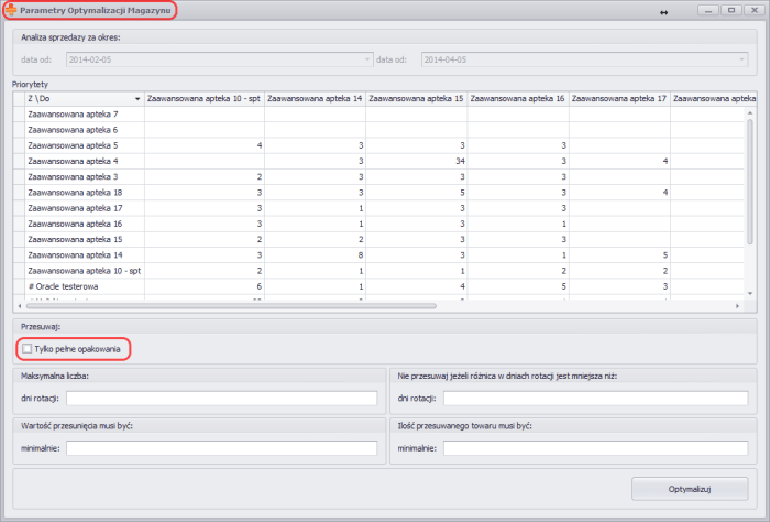 - Dodaliśmy opcję Przesuwaj tylko pełne opakowania. Po jej zaznaczeniu podczas optymalizacji magazynów nie będą proponowane do przesunięcia części opakowań.