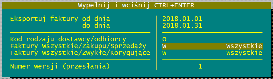 Parametr umożliwia wygenerowanie pliku eksportu zawierającego same faktury zakupu lub same faktury sprzedaży.