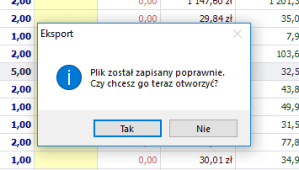 - Po zapisaniu otworzy się okno Eksport z pytaniem, czy otworzyć zapisany plik:
