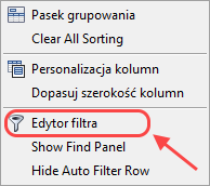 Zatem aby skorzystać z filtrów zaawansowanych należy wybrać Edytor filtra. W kolejnym kroku otworzy się okno Filter Editor.