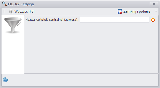 a następnie uzupełnić pole Nazwa kartoteki centralnej (zawiera).