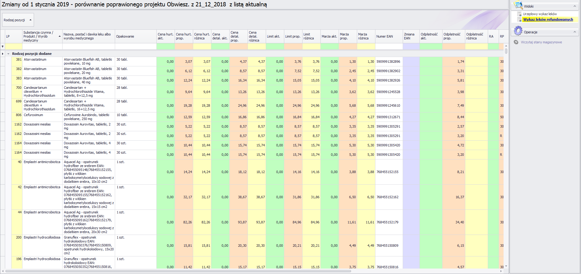 Dostępna w module Wykazy i rejestry prognoza wpływu Projektu Obwieszczenia na aktualne stany magazynowe Apteki została zaktualizowane zgodnie z najnowszymi danymi.