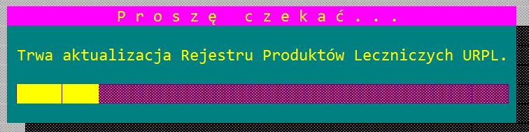 Podczas pierwszego uruchomienia funkcji Rozchody->Wydawanie leków przy okienku zostanie automatycznie pobrana Rejestr Produktów Leczniczych URPL. Jest on niezbędny w celu poprawnego przekazywania kodów identyfikujących wydane leku do Systemu Informacji Medycznej (SIM). Na starych komputerach i wolnym łączu internetowym operacja ta może trwać nawet kilkanaście minut.