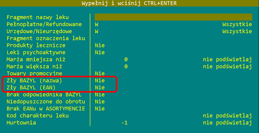 Do funkcji Podświetlenie warunkowe dodano możliwość podświetlenia pozycji posiadających potencjalnie błędne powiązanie z BAZYLem na podstawie rozbieżności nazw leków oraz kodów EAN/GTIN.