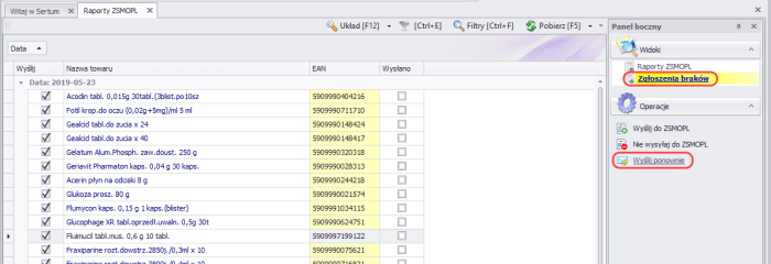 Dzięki dodaniu operacji, będzie możliwe ponowne wysłanie komunikatu zgłoszenia braków, w którym zostały stwierdzone błędy po stronie ZSMOPL (np. dotyczące błędnego numeru EAN).