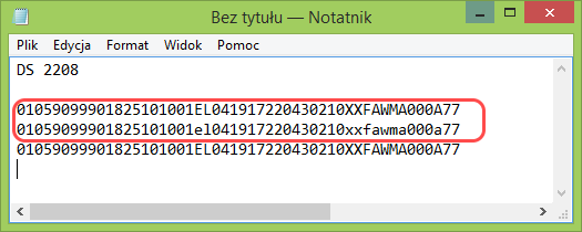 1. Wystarczy, że otworzymy na komputerze Notatnik, następnie zeskanujemy dowolny Kod 2D zawarty na opakowaniu, tak aby wyświetlić w pliku zaczytane przez skaner znaki.