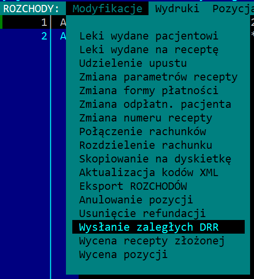 Wysłanie zaległych DRR dla recept refundowanych może zostać wykonane automatycznie za pomocą funkcji Rozchody -> Przeglądanie starych rozchodów -> Modyfikacje -> Wysłanie zaległych DRR.