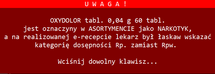 Podczas ekspedycji dodano kontrolę zgodności kategorii dostępności zapisaną na e-recepcie z faktyczną kategorią dostępności zaordynowanego leku.