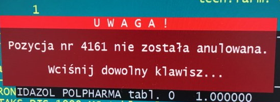Podczas ekspedycji poprawiono błąd nieskutecznego anulowania spacją wprowadzonej pozycji przed zakończeniem obsługi pacjenta.