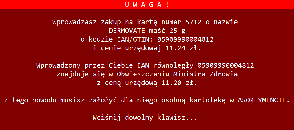 Usunięto bezpodstawny komunikat o niepoprawnej cenie urzędowej zakupionego leku, pojawiający się po instalacji BAZYLa z danymi z nowego Obwieszczenia refundacyjnego.