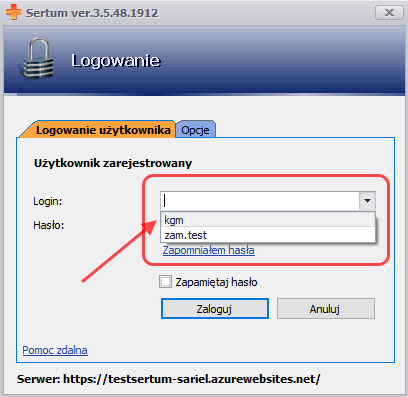 Po wybraniu loginu, pole z hasłem zostanie automatycznie uzupełnione.