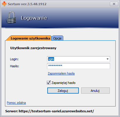 Po wybraniu loginu, pole z hasłem zostanie automatycznie uzupełnione.