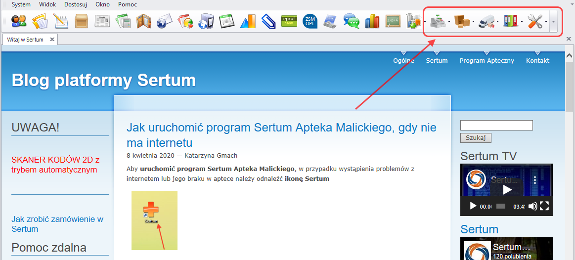 Aby zalogować się do programu aptecznego, należy uruchomić aplikację Sertum. Ikona powinna znajdować się na pulpicie komputera lub pasku zadań systemu Windows.