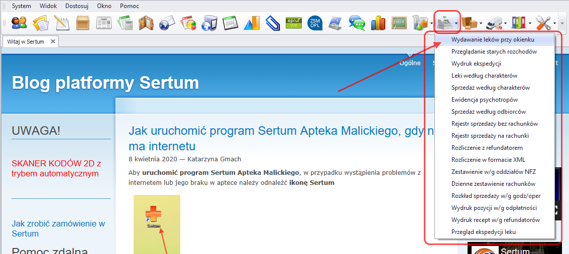 Gdyby okazało się, że w aptece nie ma aktualnie dostępu do internetu, to program apteczny należy włączyć tak jak to opisano na naszym blogu: