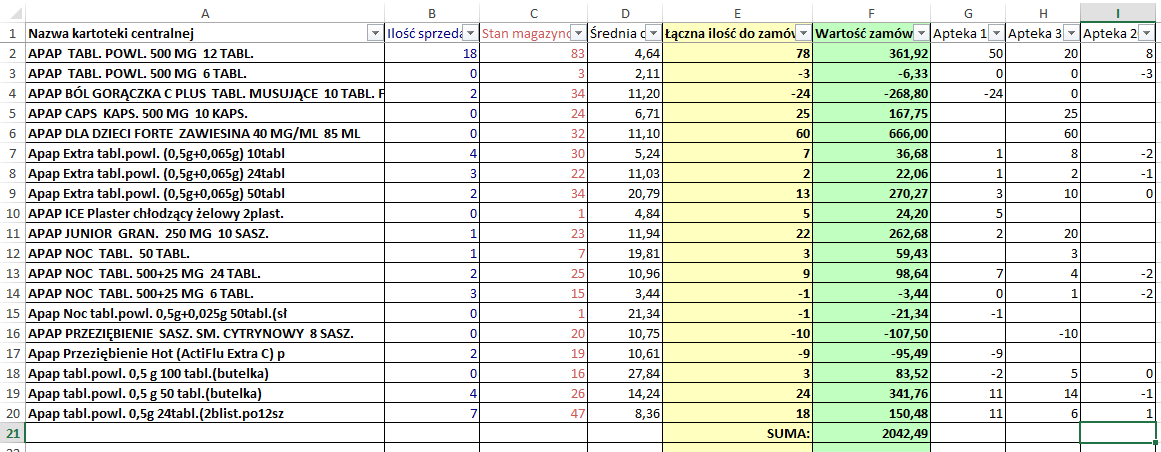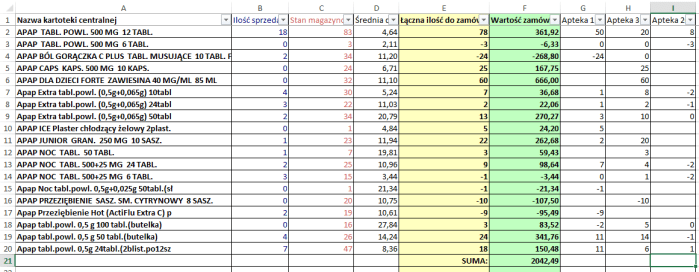 - w wyeksportowanym pliku ilość łączna i wartość aktualizują się po zmianie ilości zamówienia w poszczególnych aptekach,