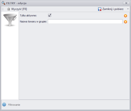 - Archiwizuj – po zaznaczeniu interesującej grupy i użyciu operacji zostanie ona zarchiwizowana i nie będzie dostępna na liście grup asortymentowych w Filtrach raportów dostępnych w Sertum.