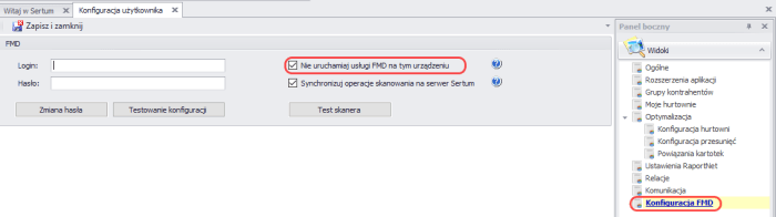 W razie konieczności można ponownie włączyć usługę na danym urządzeniu w System – Konfiguracja – Konfiguracja FMD: