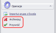 - Przywróć – po zaznaczeniu grupy i użyciu operacji, zarchiwizowana wcześniej grupa zostanie aktywowana.