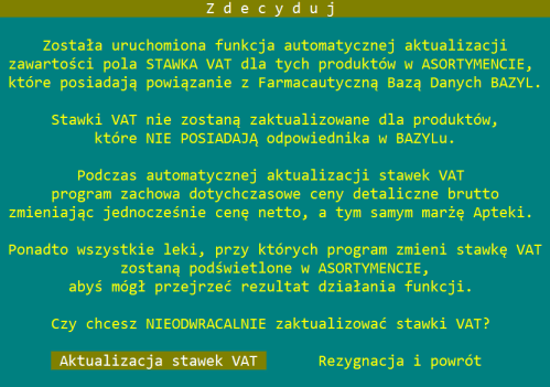 Funkcja aktualizuje stawki VAT tylko przy tych produktach, które mają odpowiednik w BAZYLu.
