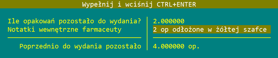 Są to notatki wewnętrzne związane ze zrealizowaną częściowo e-receptą. Ich zawartość nie jest wysyłana ani do SIM, ani do NFZ. Treść wprowadzonej notatki wyświetla się podczas kolejnej próby realizacji tej e-recepty. Notatka ma na celu przekazanie dowolnych informacji osobie dokonującej kolejnej realizacji.