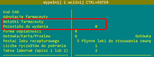 Podczas realizacji e-recepty złożonej dodano możliwość wprowadzania notatek farmaceuty oraz liczby opakowań pozostałych do wydania.
