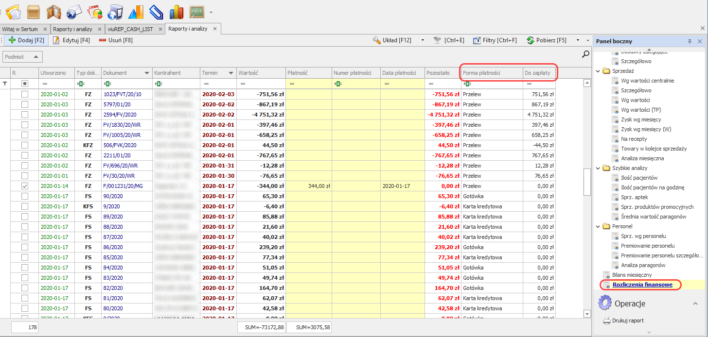- W raporcie Rozliczenia finansowe zostały dodane dwie nowe kolumny: