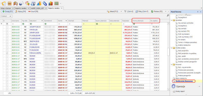 - Forma płatności – wskazana na dokumencie w programie aptecznym