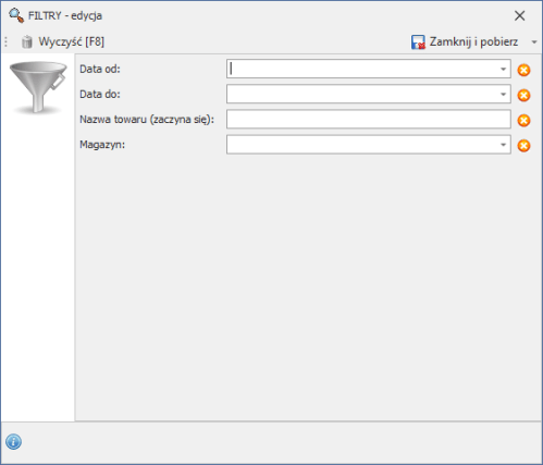 Aby skorzystać z raportów należy posłużyć się Filtrami [CTRL+F].