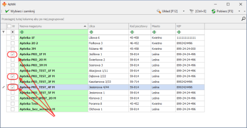 Powiązania zostaną odświeżone jedynie na aptekach, które zaznaczymy za pomocą kolumny W.