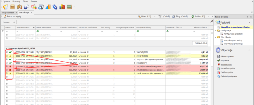 oraz kolumna Nadmiar, która informuje, czy dla sparowanych pozycji nie została dostarczona za mała lub za duża ilość preparatów.