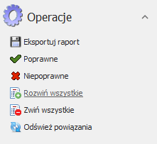 Po prawej stronie ekranu znajdują się dostępne w raporcie operacje.